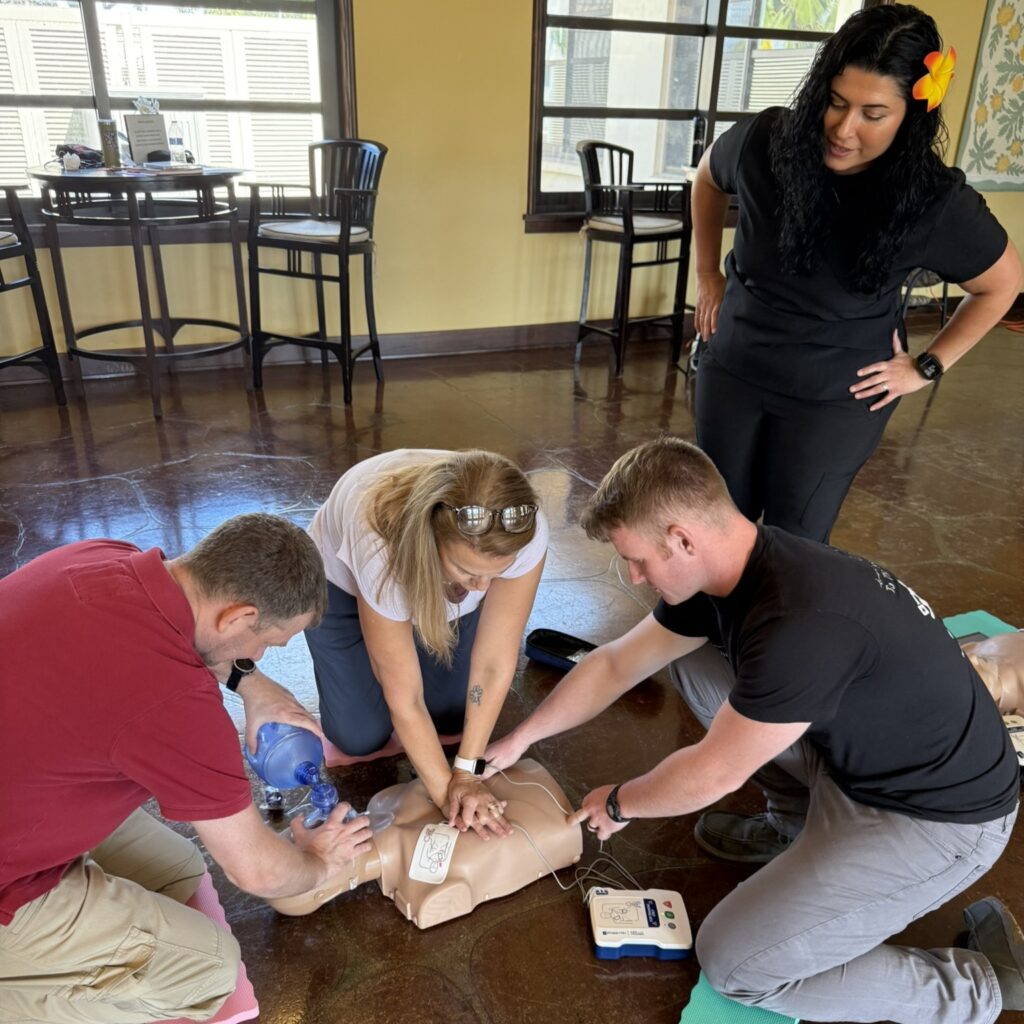 The AHA’s and ARC’s First Aid/CPR/AED courses are designed to equip individuals with the essential skills and knowledge to respond effectively to common emergencies. Participants will learn how to perform CPR, use an AED, and administer basic first aid for injuries and sudden illnesses. The course combines theoretical understanding with practical hands-on training, ensuring learners are prepared to act confidently in critical situations. This class covers procedures for adults, children, and infants, making it ideal for parents, educators, and anyone interested in becoming a proficient first responder.