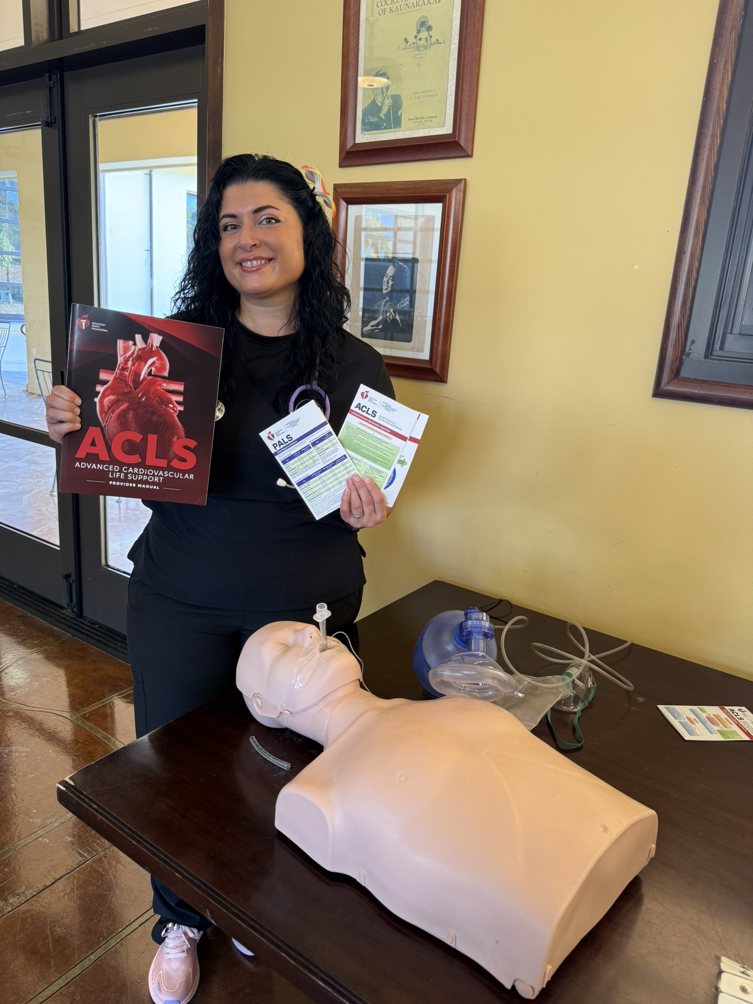 AHA’s Advanced Cardiac Life Support (ACLS) course is designed for healthcare professionals and emergency responders who manage or assist in cardiopulmonary emergencies and cardiovascular crises. It extends BLS training, focusing on effective chest compressions, bag-mask usage, and AED operation. The program covers the recognition and initial management of cardiac and respiratory arrest, symptomatic bradycardia, airway management, pharmacology, handling of Acute Coronary Syndromes (ACS) and stroke, and emphasizes the importance of effective team communication in resuscitation. This ACLS course combines online and in-person learning for the ACLS curriculum, and requires completion of an online course prior to class time. Purchase ACLS online courseĀ here. After completing the online course, schedule your in-person skills class below.